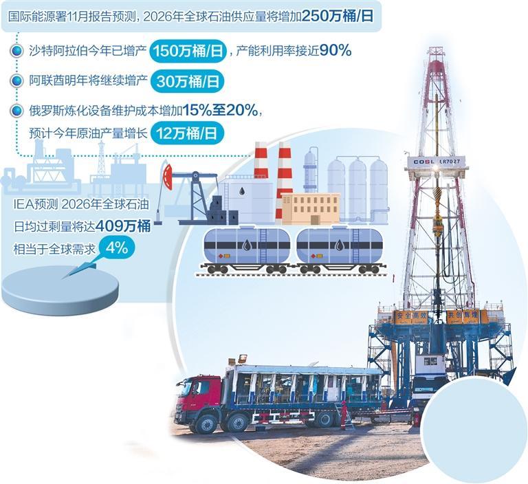 图为11月28日在伊拉克米桑省米桑油田拍摄的井架。新华社记者段民富摄今年全球油价走势呈现上半年剧烈波动、下半年单边下跌的态势。伦敦布伦特原油期货价格从年初的每桶约81美元跌至近期的每桶61美元,西德克萨斯原油期货价格也出现了类似的走势。短期来看,供需基本面并未发生明显变化,石油供过于求的格局难以改变。不过,影响国际油价走势的三大因素仍将影响明年的石油市场,而日益复杂的地缘政治斗争也带来了更多的不确定性。首先,主要产油国监管政策存在问题。主要原因是“OPEC+”,其中包括OPEC成员国与非OPEC产油国,内部利益存在严重分歧。其产能控制政策屡屡举步维艰。实施的实际效果是难以扭转过度走势,难以影响国际油价长期走势。从产能来看,“OPEC+”增产空间明显收窄。国际能源署(IEA)11月报告预测,到2026年全球石油供应将增加250万桶/日。报告认为,沙特今年将增产150万桶/日,产能利用率接近90%,到2026年进一步增产潜力有限;明年阿联酋将继续增产30万桶/日。伊朗、伊拉克等主要产油国受到影响受基础设施老化、投资不足等因素影响,实际产量始终低于目标水平。更重要的是,俄罗斯作为“OPEC+”的重要成员,受到美国和欧洲的制裁,导致技术供应减少,炼油设备维护成本上升15%至20%。预计今年原油产量增长为12万桶/日,2026年产能增长可能会更慢,甚至可能发生帕斯博减产。 “OPEC+”11月会议决定12月小幅增产13.7万桶/日,并暂停2026年第一季度增产。为保持石油市场稳定,主要产油国有能力根据市场情况调整增产速度。市场人士认为,政策越灵活,影响越小。“OPEC+”长期以来一直通过减产来缓解市场压力过大的压力来维持价格稳定。近年来,这一措施的效果逐渐下降。 IEA预计,到2026年,全球日均石油盈余将达到409万桶,相当于全球需求的4%。目前“OPEC+”产能主要集中在沙特阿拉伯和阿联酋,总计约200万桶/日。虽然可以在突发供应中断时起到缓冲作用,但不具备长期控制能力。专家认为,即使“OPEC+”减产政策短期内能通过释放信号缓解市场恐慌情绪,但长期来看,难以改变非“OPEC+”产油国需求收缩和增产的双重压力。二是美国能源政策变化及其对世界的影响日益加大。的能量转变。作为全球最大的石油生产国,美国能源政策调整和页岩油产能释放是近年来国际石油市场供应过剩的重要推动因素。尤其是美国政府的新能源政策从“激进转型”转向“安全优先”,支持传统油气产业扩张。美国通过的“又大又美”的税收和支出法案提前结束了7500美元的电动汽车购置税,压缩风能和太阳能发电补贴窗口期,只对核能、地热能等稳定能源保持长期补贴,这一变化将直接减缓能源替代美国能源信息公司(Energy Infor)的数据显示,明年石油和天然气发电的替代需求预计将增长8%。美国政府预计,2025年美国页岩油产量将恢复至疫情前高位,二叠纪盆地(Permian)技术升级和成本降低推动产能持续扩张。明年美国页岩油产量预计将增加120万桶/日,占非产油国增量的60%以上。今年11月,美国石油钻井平台数量仍维持在410多座,预计为2026座。还要看到的是,美国政府的政策调整并没有改变能源变革的长期方向。即使补贴减少,电动汽车的普及率仍将以年均5%的速度增长。运输油需求长期下降的趋势只会在短期内对美国乃至世界石油需求产生影响。美国对俄罗斯制裁的间接影响也加剧了全球供给结构的失衡。新一轮针对俄罗斯的制裁仅针对俄罗斯石油公司和卢克石油公司(这两家公司合计占俄罗斯原油产量的50%)。但俄罗斯通过“影子舰队”将出口目的地向东方转移(对亚洲的出口份额增至85%)。 )等方式规避制裁,短期内出口不会受到明显影响。从长远来看,这将对俄罗斯经济产生重大影响。有机构预测,明年俄罗斯石油产量增速可能降至5万桶/日以下,但这一缺口将通过美国、巴西等国加大制裁力度完全填补。俄罗斯石油出口折扣。随着海上搁浅石油水平上升,海上搁浅原油将占全球海上库存的32%。这种结构性失衡将加剧石油价格波动地区。人工智能(AI)驱动的电力需求可能对全球能源消耗产生结构性影响。全球人工智能产业爆发式发展,正在成为能源消费领域的新革命。人工智能产业的引擎正在成熟或显着,成为能源需求增长的主要引擎。机构研究报告显示,在人工智能算力需求进步和可再生能源峰值负荷能源增加的推动下,2025年第二季度全球燃气轮机新订单同比增长38%。IEA预测,全球数据中心、人工智能和加密货币的电力需求将从2022年的460太瓦时大幅增长至620太瓦时至1050太瓦时,增速高达128%。计算平台等主要设施用电量将占60%以上。这种增长显示了“算力每翻一番,用电量就会增加1.2至1.5倍”,这将对能源供应的稳定性和灵活性提出非常高的要求,这将直接带动AI数据中心对不间断供电的严格需求。石油产品的市场需求不断扩大。燃气轮机的优势包括启动速度快、建设时间短、并网审批良好,使其成为供电解决方案的重要选择。在AI产业集中的北美和欧洲,石油和天然气发电占比将分别达到42%和38%,这也将带动燃料油和液化天然气等石油产品的消费增长,IEA预计到2026年全球燃料油需求将增加51万桶/日,其中电力领域新增需求将有30%的增长,综上所述,2026年世界石油市场仍将保持增长。主要判断供给过剩,三个主要变量会交替作用。 Among them, geopol